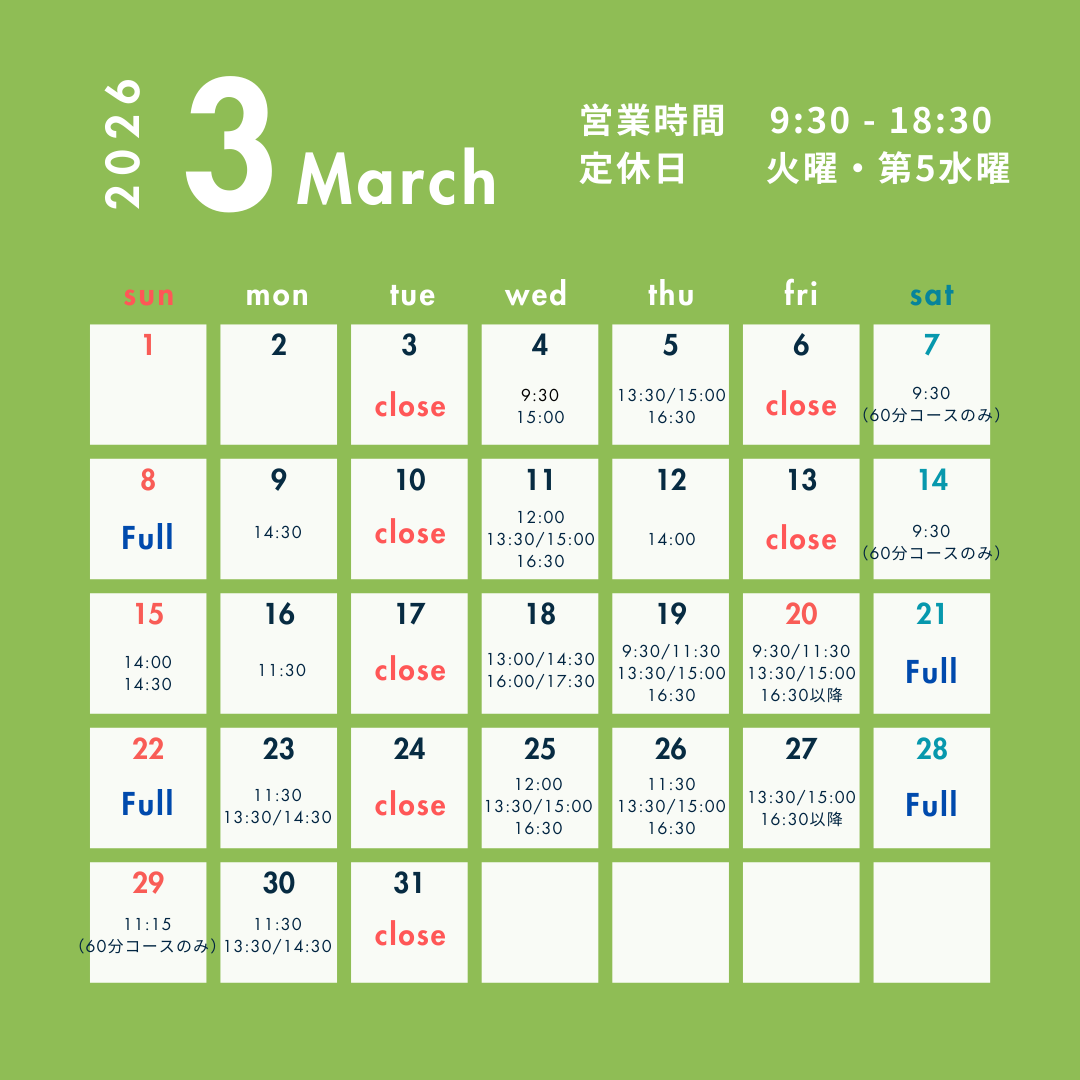 完全予約制・パーソナル対応のため、人目を気にせずご自身の身体に向き合える、安心した空間でご利用いただけます。